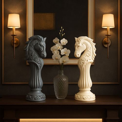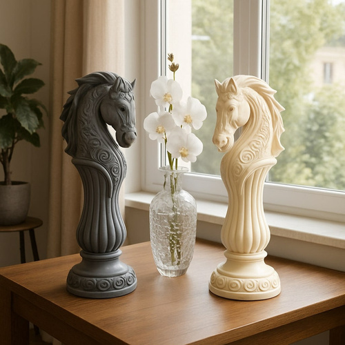 مجسمه دکوری طرح مهره شطرنج اسب، انتخابی خاص و چشمنواز برای علاقهمندان به دکوراسیون هنری و کلاسیک است. این مجسمه با طراحی الهامگرفته از مهره اسب در شطرنج، ترکیبی از ظرافت، قدرت و اصالت را به نمایش میگذارد. جزئیات برجسته و منحنیهای زیبا در کنار فرم کشیده و ایستاده